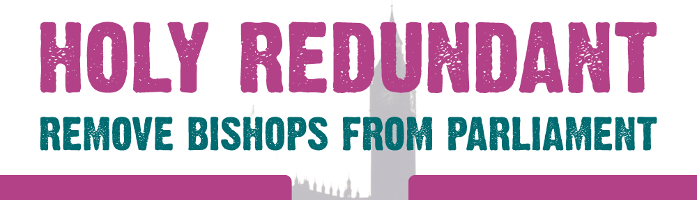 The Governments proposals to reform the House of Lords will preserve and entrench the influence of unaccountable representatives of the Church of England in our Parliament. At present, the Church of England is granted privileged access to our Parliament. Anglican Bishops sit alongside Peers in the House of Lords, they have the right to vote and debate, they influence our national way of life. They acquired this right solely by virtue of their religion, their gender and their position in the hierarchy of one particular denomination of one particular Church. They are unaccountable to the public. We want fair reform of the House of Lords which does not afford privilege to any special interest group. We urge the Government to remove the automatic right of Bishops to sit there. None of the arguments for keeping Bishops makes sense, and keeping them is unpopular with the public. At a time of general reform, we possess a once in a generation opportunity to remove this archaic and unjust aspect of our political system. Visit the link above for information about the campaign and how you can assist. The key messages of the campaign (that the current situation is unfair, unjustified and unpopular) can be seen in more detail here: http://holyredundant.org.uk/wp-content/uploads/Key-messages.pdf |
