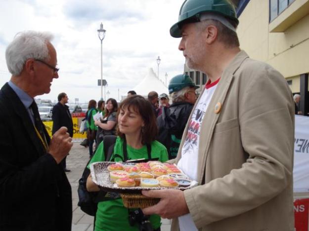 I was invited by Friends of the Earth to speak at their fracking fringe meeting at the Lib Dem Conference in Brighton on Saturday, and also got involved in their Global Frackdown action (involving cup cakes and helmets!) outside the Conference venue in the afternoon. With members of FoE and representatives of local fracking campaign groups from Lancashire (RAFF), Sussex (No FiBS), and Kent.I was the Vale Says No! rep. Some of Frack Off’s direct action heroes were also in attendance.