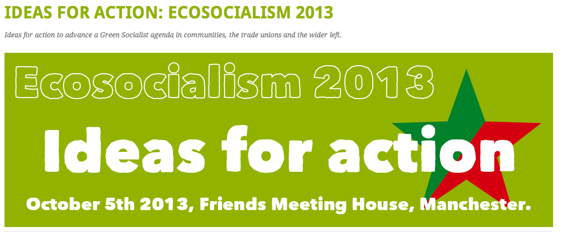 A conference which aims to share practical ideas for action, in order to help better promote green, socialist alternatives to austerity, neo-liberalism and the environmental destruction caused by Capitalism at every level, and to help build a bigger and broader Ecosocialist movement nationally and internationally in the process.