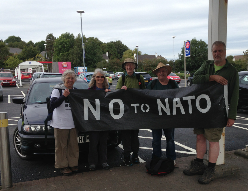 Via the A48 near Laleston (just after an interesting encounter with South Wales Police – apparently a passing motorist thought we were being anti-social by carrying our banner over a motorway bridge and had called the Police to complain. Perhaps we should call the Police to complain about all the antisocial barricades being erected around Cardiff and Newport!)