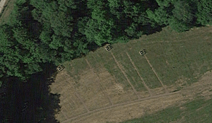 The quarry is that horseshoe of trees just to the north of the residents of Heol Brofiscin. This aerial photo was taken in 2014 and close up of the bare ground in the top half of of the quarry shows some interesting installations that I will try to have a closer look at. (Click on image to enlarge)