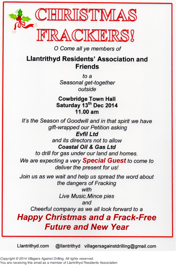 On Wednesday 10th December (UN Human Rights Day) at 3 pm, anti-fracking campaigners will hand deliver a letter to 10 Downing Street(1) which has been signed by no fewer than 205 UK residents groups(2) in support of a report calling for a moratorium on fracking on human rights grounds.(3)