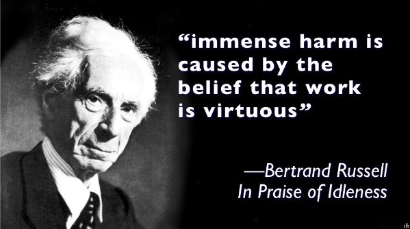 The idea that the poor should have leisure has always been shocking to the rich. In England, in the early nineteenth century, fifteen hours was the ordinary day’s work for a man; children sometimes did as much, and very commonly did twelve hours a day. When meddlesome busybodies suggested that perhaps these hours were rather long, they were told that work kept adults from drink and children from mischief. When I was a child, shortly after urban working men had acquired the vote, certain public holidays were established by law, to the great indignation of the upper classes. I remember hearing an old Duchess say: ‘What do the poor want with holidays? They ought to work.’ People nowadays are less frank, but the sentiment persists, and is the source of much of our economic confusion.
