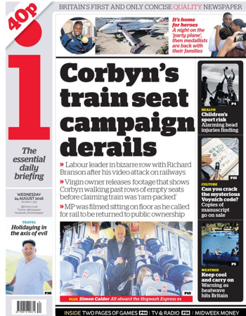 The media clamour over the crowded-train non-story demonstrates just how easily the corporate media (that very much includes the i as it is run by aspiring media baron Ashley Highfield, who is trying to do a deal to supply BBC its local news) and big business interests (and they don’t come much bigger than Richard Branson) can manipulate the agenda.