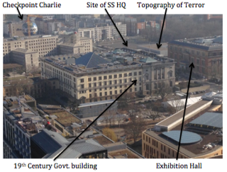To the SE of Potsdamer Platz is the what was the nerve-centre of the Third Reich. It used to be called Prince Albrecht Strasse, but was renamed by the East Germans after a prominent member of the communist resistance to the Nazis, so is now Niederkirchnerstrasse. It was a sector border street and had the Berlin Wall built along it in 1961, running up to Checkpoint Charlie.