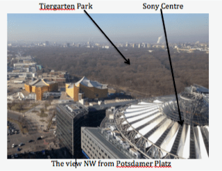 This is what I have found, looking back at my pictures from Berlin. Most of them tell multi-layered stories. These were taken from the top of one of the modern skyscrapers in Potsdamer Platz, built on the east side of the wall, in what would have been in Death Strip less than thirty years ago.
