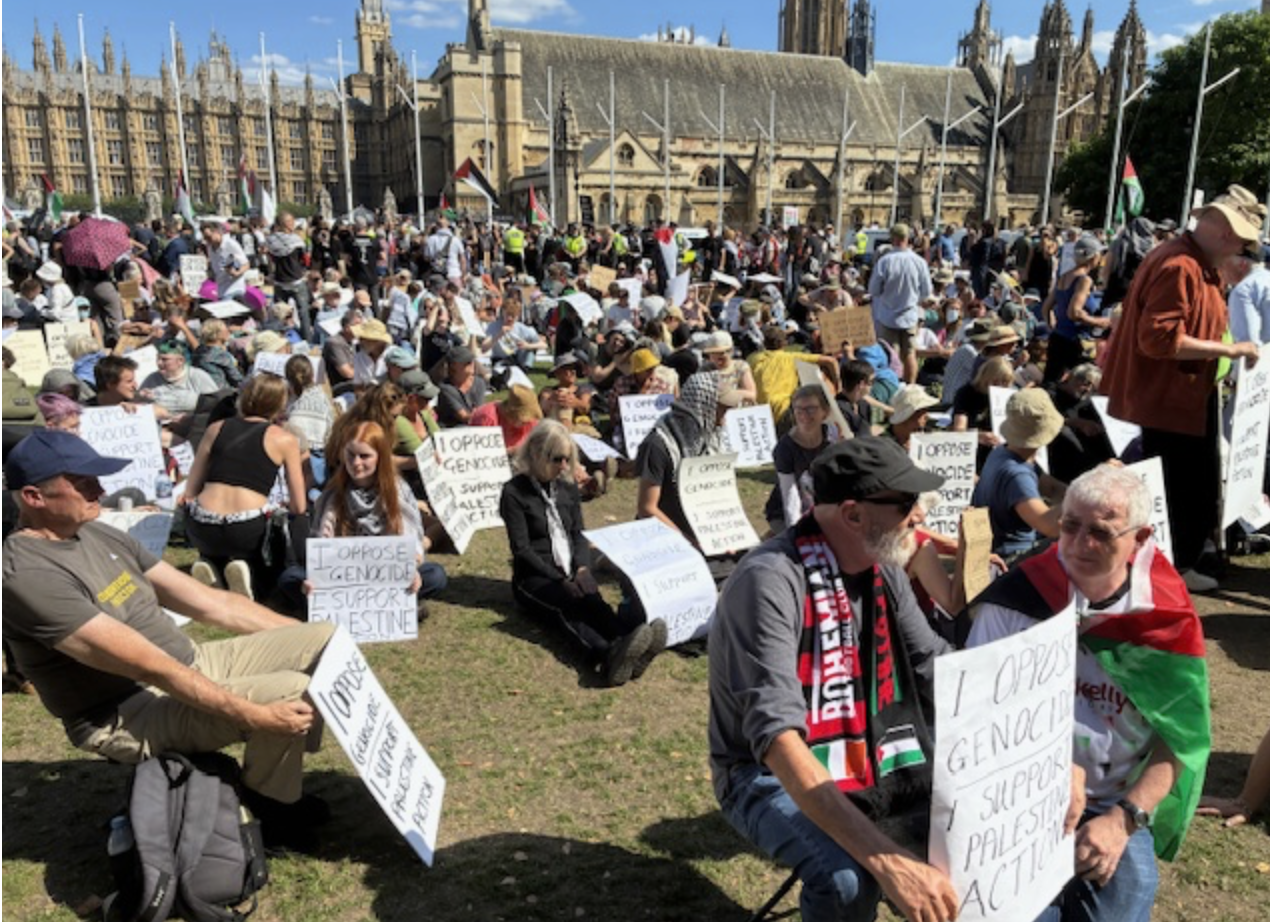 I suspect I was not alone on reflecting on the mounting horrors being committed in Gaza, with our government’s ongoing complicity, but also that today also marked the 80th anniversary of the bombing of Nagasaki, three days after the bombing of Hiroshima. These war crimes killed 120,000 people instantly and hundreds of thousands more slowly and excruciatingly due to the aftereffects; more than everyone of us on the streets of London today. We didn’t get to see people dying excruciating deaths on our screens in 1945; most didn’t own any screens back then (there were less than 10,000 televisions in the UK in 1945). Now we get to watch genocide, including the starvation of children, in real time on all our many screens.